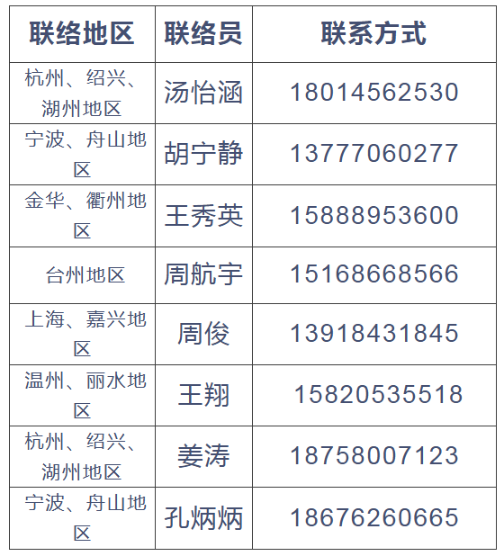 请联系对应地区联络员,经审核后加入浙江校友会筹备群~